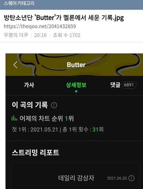 방탄 1위 밀리자마자 올라온 글