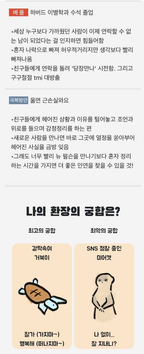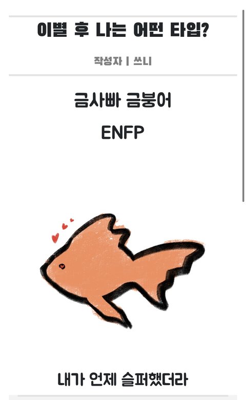 이별후 모습 동물로 비유한 mbti 발견함ㅋㅋㅋㅋ 엔프피인 나는 금사빠 금붕어랰ㅋ