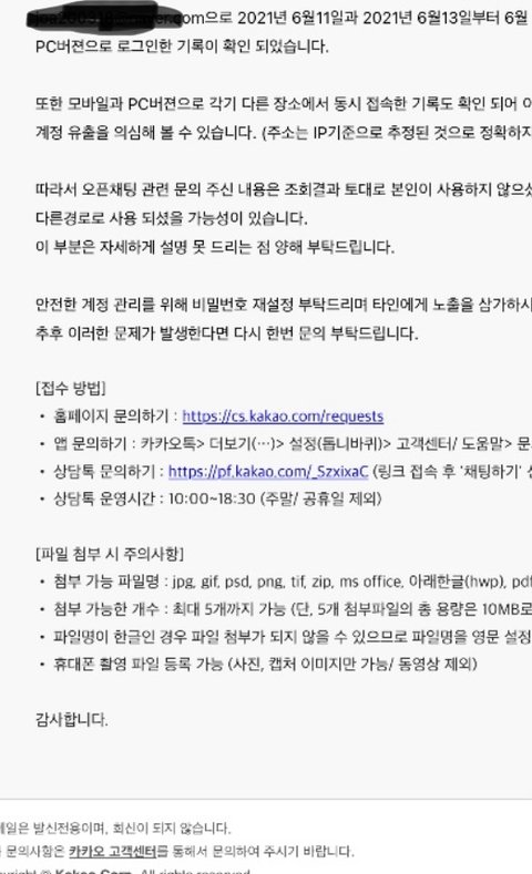 오픈채팅 계정해킹 당해서