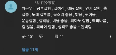 그리고 은우 나오는 유튜브들은 진짜 댓글 보는 재미도 쏠쏠함