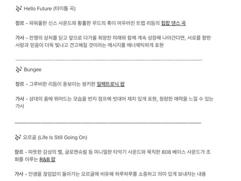 신스 사운드 힙합 댄스 뮤직 일렉트로닉 팝 글로켄슈필 알앤비팝 싹 다 검색해서 대충 어떤 소린지 듣고 왔는데 개좋음 특히 글로켄슈필