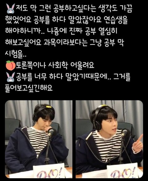 중고등학교 다 포함해서 공부하거나 아니면 내 취미이자 특기가 노래였는데
