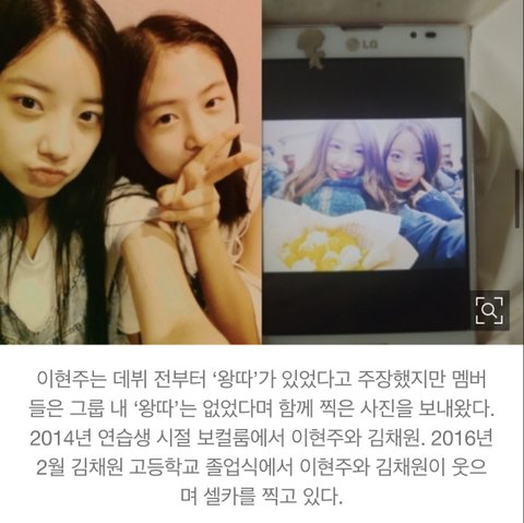 ++) 이현주는 몇년동안 폭행 등 괴롭힘이 지속되었다고 말하는데 몇년동안 자기 괴롭히는 사람이랑 이렇게 정답게 사진 찍을 수 있음? 어제 스티커사진 협찬이라고 까던 애들아 이것도 반박해봐... ㅋㅋ