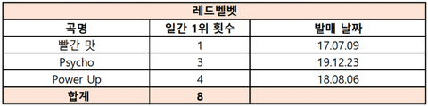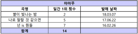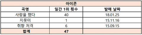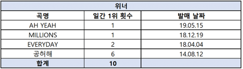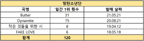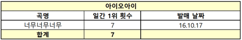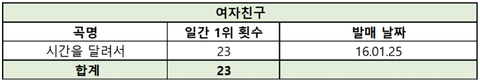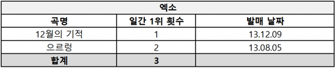 3세대 아이돌 그룹 멜론 일간 1위 횟수 정리