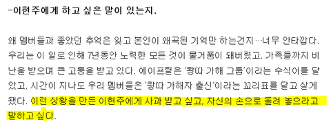 나는 당사자가 아니니 이러쿵저러쿵 말하기 어렵지만 최소한 서로 오해가 있었다거나 어리고 철없어서 그랬다 미안하다 서로 사과하면 모르겠는데 에이프릴 입장보면 잘못한거 하나도 없다는 입장같아보임..