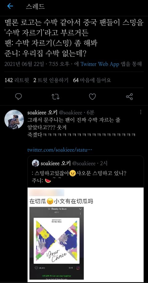 way보에서 언급한듯 중국팬들은 스밍을 수박자르기라고 한대ㅋㅋㅋㅋ