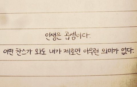 모든 학교의 전교일등 공통점이 뭔지아냐? 걔넨 교과서,프린트물,부교재 싹 다 외운다 굳이 안외워도 되는 옆에 조그만한 용어설명까지 걔넨 토시하나 안틀리고 달달달달 외움 난 그거 보고 왜 저 _만한 부분까지 외우지?했는데 서술형에 그 부분 나온거 보고 ㅈㄴ놀랐다