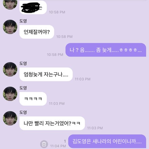 늦게자는걸 도영이한텐 차마 말 못하겠고