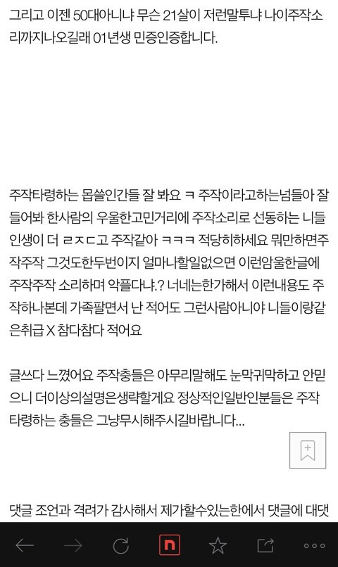 그쪽이 던지는 주작소리하나에 저는 오만가지생각이들고 상처를받아요.. 잘생각해서달아주세요..