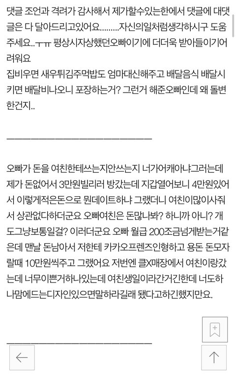 저번에도 여친생일날 OST 갔었는데 너도맘에드는디자인있으면 사줄태니 말해보라고해서 아냐됐어 그랬거든요 평상시엔 욕설 때리는거 저 21년같이살면서 한번도 그랬던적없던사람이 저러니 더욱더 당황스럽고 착잡합니다...
