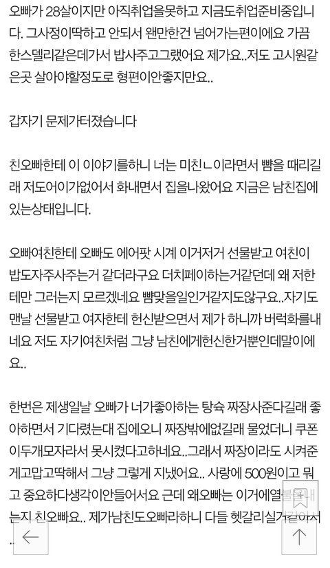 남자친구는 28살이지만 취준생이에요.
