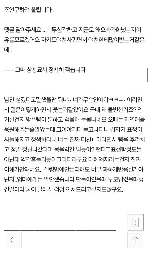 근데 뺨때리는오빠가 이해가안돼었고 그래서 우선 집을나온상태입니다. 남친집에 와있었어요.