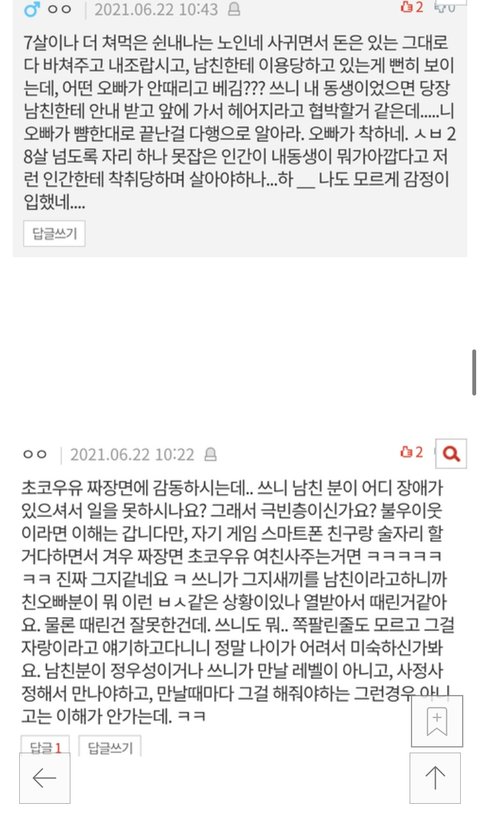 오빠는 소득이 없어도 제가 어린 여자친구라면서 더치페이를 해주는 스윗남이에요.