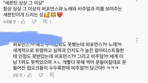 아니 유튭에 세븐틴에게 주고싶은 상은?? 뭐 이런거 있어서 썼는데 뭐라고 ㅅㅂ??__ 내새끼 영상이야