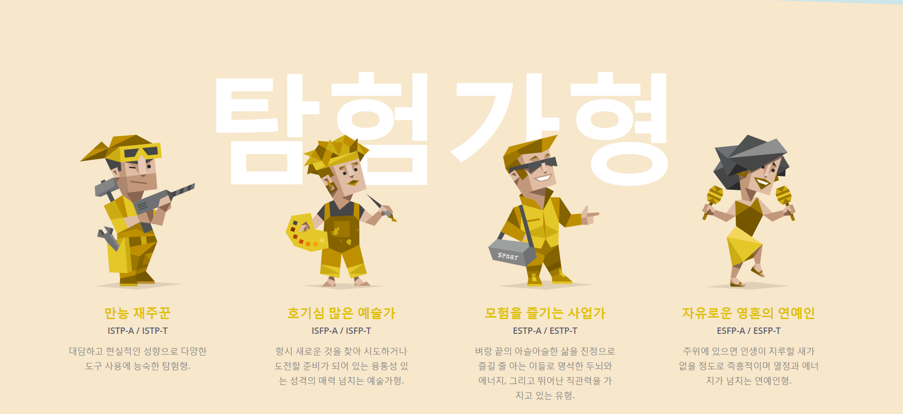 mbti: SP형 : 자유로운 탐험가 (ESFP / ESTP)