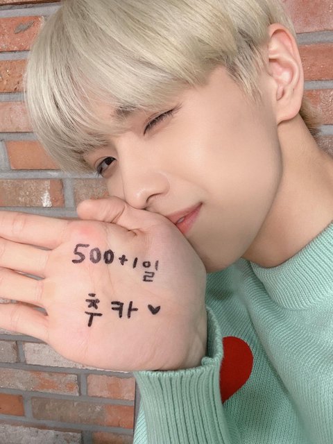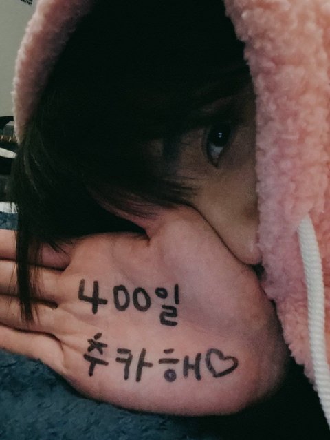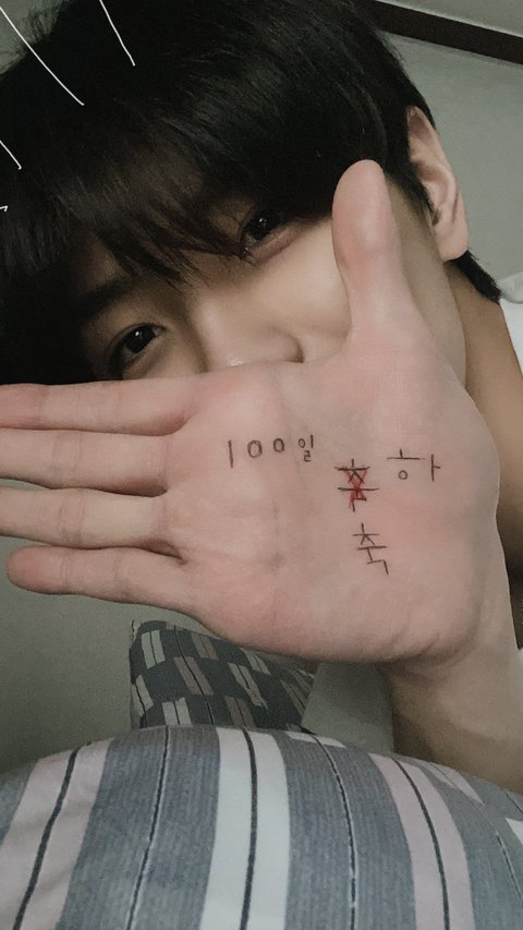 손바닥에 글씨 써서 팬들 기념일 축하해줌