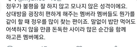 정우 성격에 대한 거 너무 공감