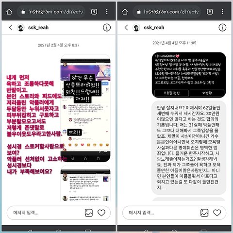 하도 내프사를 따라하고 내 유투브노래 뭐 듣는지도 아는 등해서 어떻게 날 아냐고 DM물어봤었음.그리고 욕도 엄청했었고..12월중순부터는)