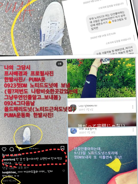 「내게오는길」0923노#드도넛에 첫DM보내자 0924본인프사 PUMA옷과 한발사진 이니