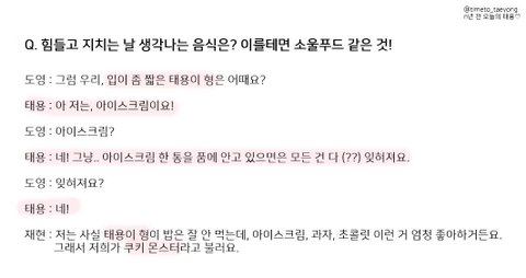 너무 귀여워ㅋㅋㅋㅋ루키즈때부터 불렸던건데 요즘은 잘 안불려서 조금 아쉬웡ㅋㅋㅋㅋ일본에 행사 갔을때마다 관계자들이 태용이 과자박스 준비해줬다고 들었는데 참 군것질 좋아하는것도 진짜 아기같아