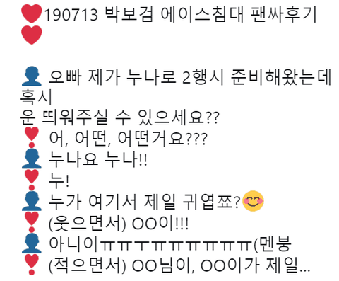 팬 이름 불어주며 "ㅇㅇ이가 제일 귀여워요" 라고 해줌ㅋㅋㅋㅋㅋㅋㅋㅋㅋ