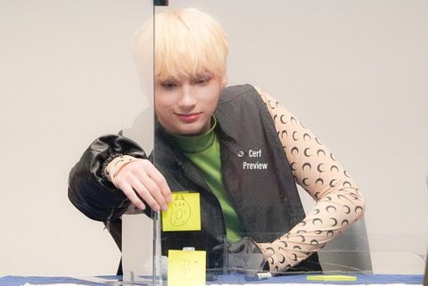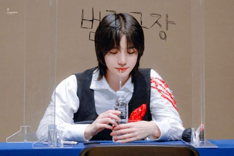 아크릴 가림막을 100프로 활용중인 투바투 팬싸현장ㅋㅋ