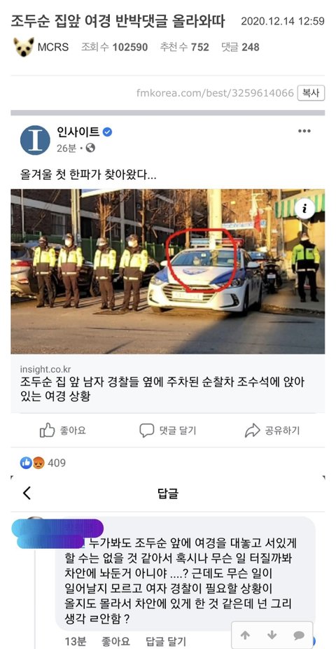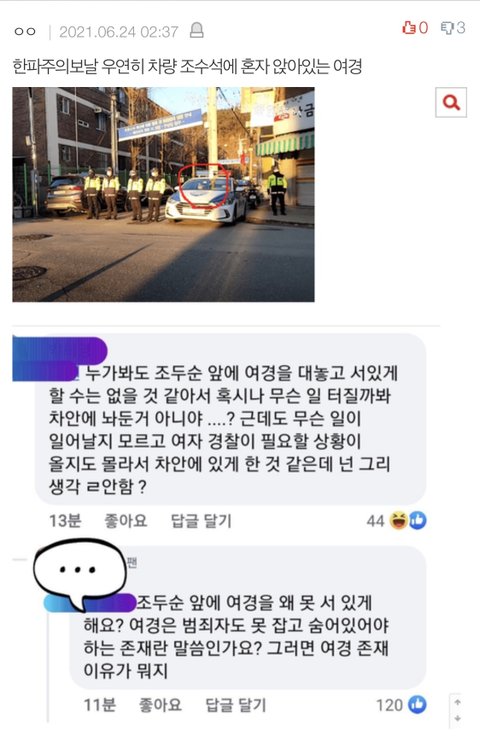 정말 여경이라 차 안에 앉아있는게 맞을까? 싶어서 구글링해서 찾아보던 중 이것도 여혐주작이라는 걸 발견했음.