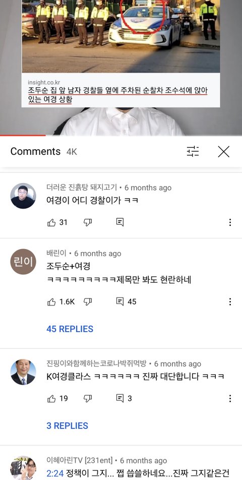 진실을 알려주는 댓글이 등장했음에도 그렇게 욕을 하던 수많은 남자들은 아무도 사진속 여경에게 사과하지 않았고, 그냥 그 뒤로 다들 짠듯이 침묵함.