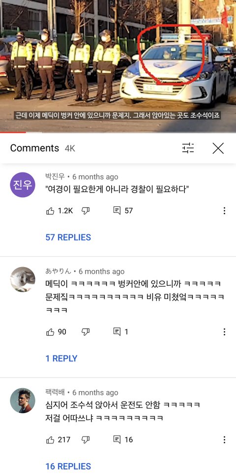 결론은 그냥 밖에 서있는 남경과 차 안에 있는 여경은 소속이 달랐던 거였음...