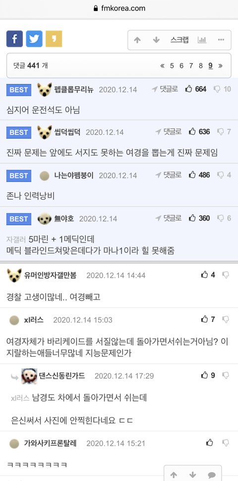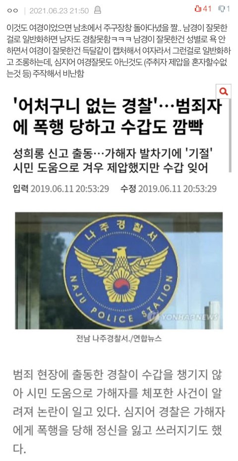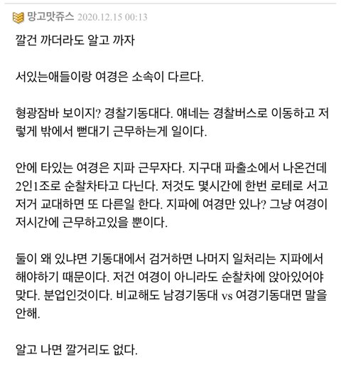여경은 그냥 본인의 업무를 하고 있다는 이유만으로 저렇게 많은 남자들의 욕을 먹었던 거임...