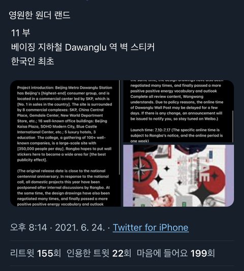 베이징 지하철역 한국인 최초래 캬