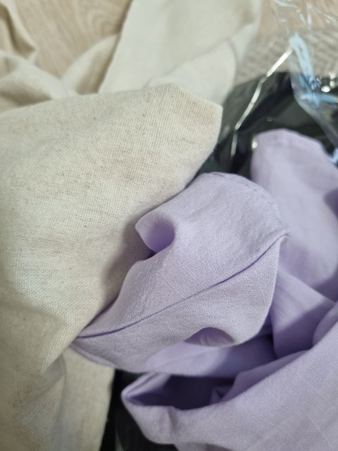 오른쪽이 여기서 구매한 15000원 린넨이라고 써놨지만 린넨이아닌 보라색 원피스입니다 재질 비교하시라고 올려요