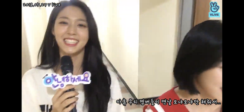민아 : 아휴 진짜 우리 멤버들이 맨날 오냐오냐만 해줘서 발전이 없어요 어휴 진짜 (웃음)