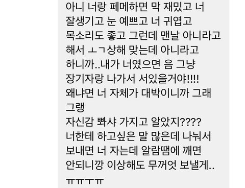 사진은 쟤랑 연락하다가 쟤 잠들고 혼자 또 주절주절 장문으로 쓴거 중에 자른거..ㅎㅎㅎㅎ