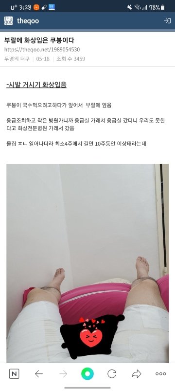무슨 독립투사냐…? 부위도 하반신에 넓고 중요부위면 쏟자마자 119불러서 화상전문병원으로 바로 갔어야지… 화상도 골든타임 있는데…ㅜㅜ