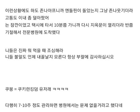 아프신데 글을 왜 이렇게 재미있게 쓰시는거에요. 죄송하지만 웃으며 봤어요. 빨리 쾌유되길 빌게요
