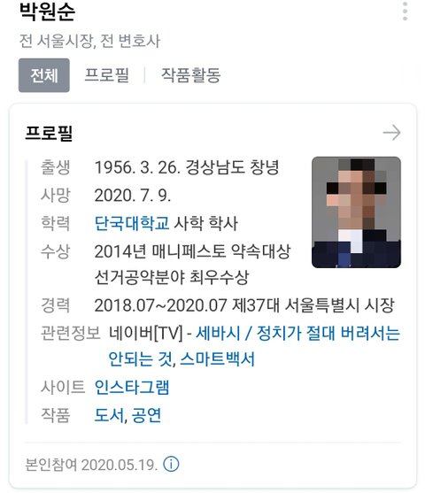 박원순 시장 사망한지 벌써 1년 다 되어감