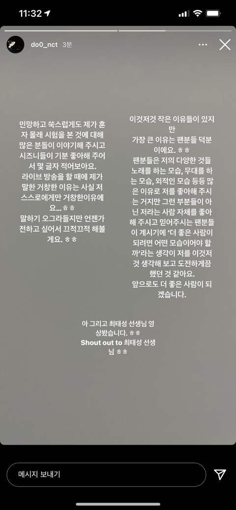 김뎡 진짜... 진심.. 연예인은 인성영업 하는거 아닌데.. 이렇게 팬들한테 이렇게 진심일 수가 있냐... 진짜.. 개감동임..