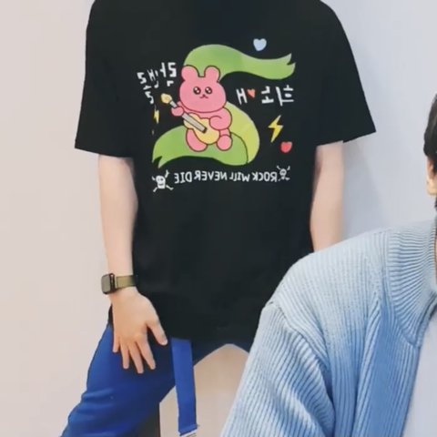 팬이 선물한 희노애롹앤롤 토끼 티셔츠 입고 성수동 회사 출근하는 고신원