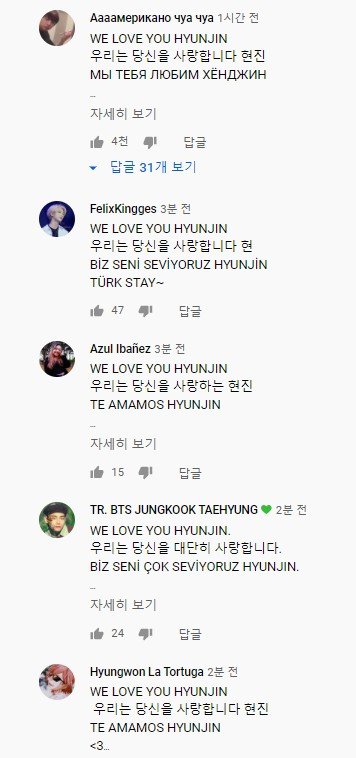 외테이들이 자기나라 언어로 현진이 사랑한다고