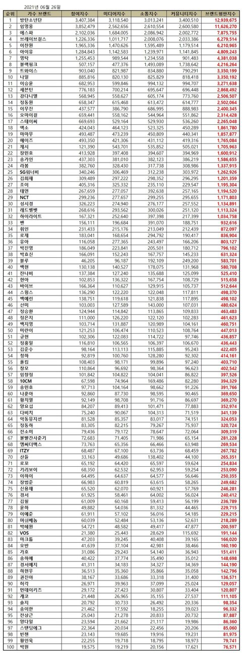 솔로가수가 대단하다ㄷㄷ 해외팬도 적어서 sns 언급량도 적을텐데