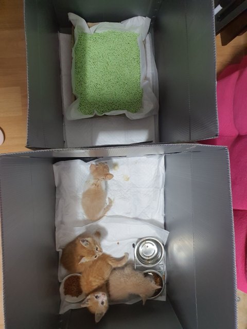 아부지가 사료랑 물은 챙겨주고 계셨다는데 너무 아가들이라서 배변활동이나 잘 하고있는지 모르겠구요 ..ㅠㅠ 아직 딱딱한 사료 먹으면 안될텐데 ㅠㅠ...