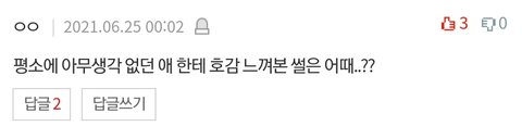 이 분야 갑 꿈에 나왔을 때 아니냐 평소에 관심 없었는데 꿈에서 나한테 잘 해주거나 그러면 현실에서도 좀 호감 생기더라