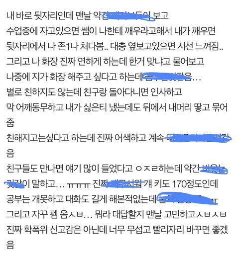 친구들도 만나면 얘기 많이 들었다고 ㅇㅈㄹ하는데 약간 비웃는것같이 말하고… ㅠㅠㅠ 진짜 개무서워 걔 키도 170정도인데