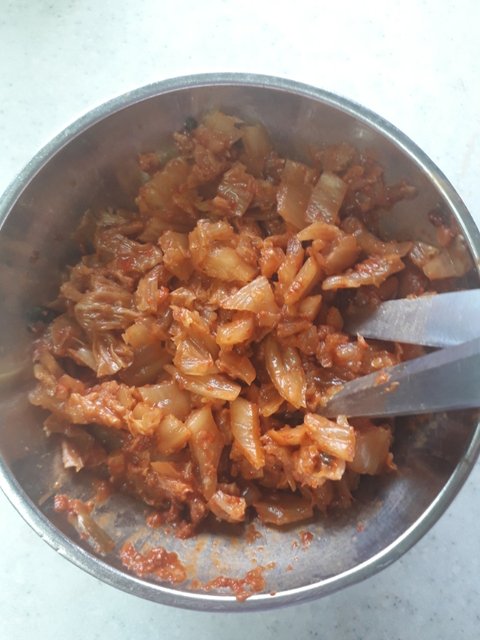 참치는 김치랑 양파 다 볶고 간장 넣기전에 볶아줘!