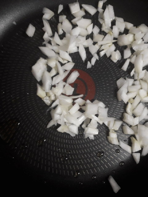 재료가 다 준비됐으면 후라이팬에 식용유를 두르고 어느정도 데워졌으면 양파를 넣고 볶아준다