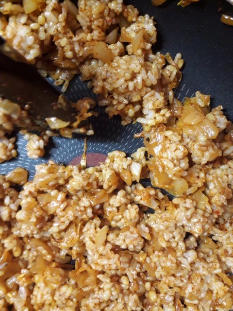 혹시 고기 넣어서 볶을 사람은 양파말고 고기 먼저 볶아야 돼!! 스팸도 마찬가지야