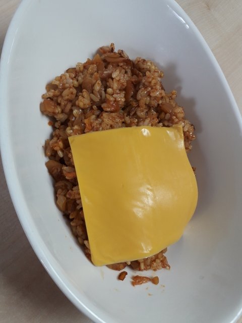 그리고 아까 고기대신 찾았던 체다치즈를 올려주면 완성
