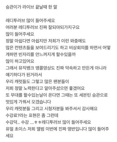 진심 눈물남…오늘 차트인 시키자 진짜