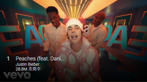 6위 저스틴 비버 "Peaches" 2880만 조회수